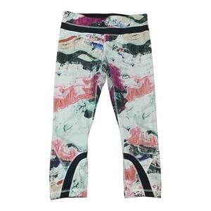 Lululemon size 8 Run inspire crop II leggings luxtreme white pink splatter mesh