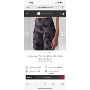 Lululemon Wunder Under Pant leggings Shibori Magnum Black size 8. Like new condition. Please feel free to look at my other listings for bundles!