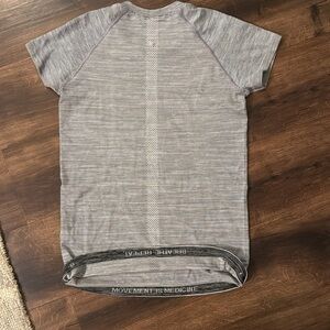 Lululemon size 8 black and white striped run swiftly tshirt.