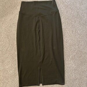 Lululemon slim-fit high-rise Nulu skirt in army green size 8. Midi length. Buttery soft lycra fabric. Brand new with tags, never worn.
