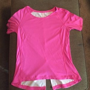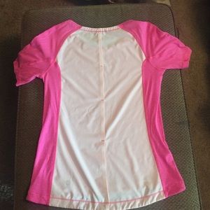 Pink striped lulu ss tee. Size 6. Very good condition. One small pull in fabric (pictured) but i didn't notice until I was looking for any wear. Washed and laid out to dry. Love this shirt, just a little snug on me.