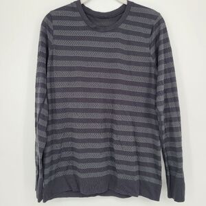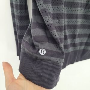 Lululemon stripe grey black breathable long sleeve breezy top size 6
