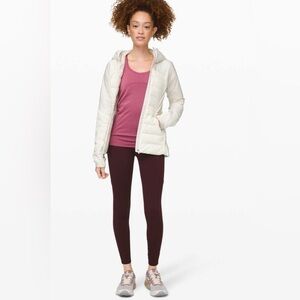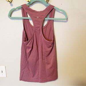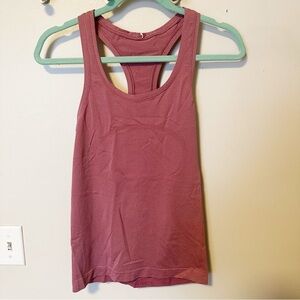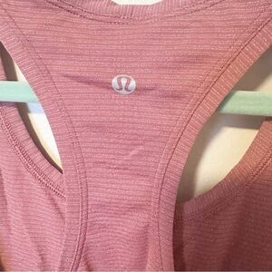 Lululemon swiftly speed racerback Shine tank. Size 6, great shape. Racerback style with stretch. Moss rose/white/silver. Has a shimmer look to it.