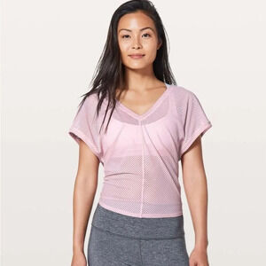 Lululemon sz 8 Ahead By Miles Short Sleeve Tee Pink Petals Mesh Training Top