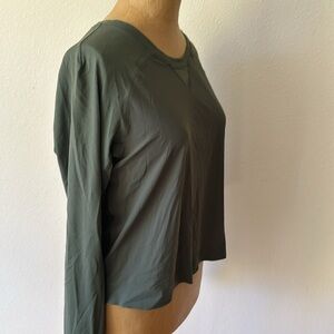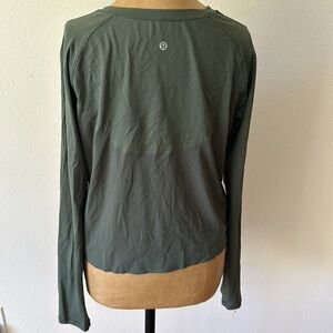 Lululemon sz 8 running shirt muted green thumb holes, great pre owned condition