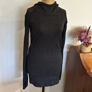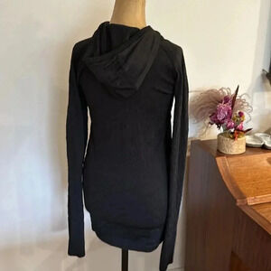 Lululemon sz 6 textured hooded long sleeve with thumb holes black excellent condition thermal