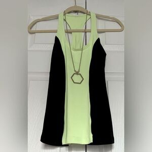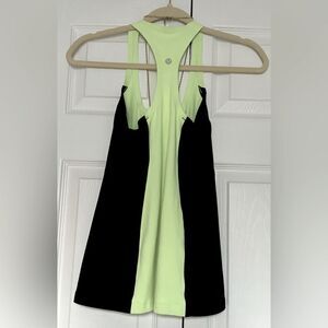 Black and light lime green Lululemon tank! Tag removed, but fits like XS — see measurements in photos. Material shown in picture. Item has been well loved, but still has lots & lots of wear left. Cute & versatile piece. A closet staple. Very comfy. Adorable. Item has been worn a few times, but is still in great condition (as shown in close-up pictures)! A MUST HAVE!! Smoke/pet free home.
