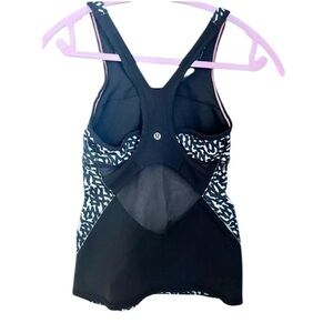 Keywords: lululemon tank, lululemon athletica, workout top, yoga wear, athletic tank, black and white print, racerback, gym style, fitness fashion, activewear, running tank, pilates top, training gear