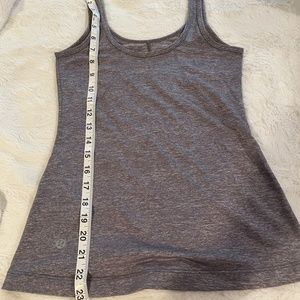 Lululemon gray tank top! No flaws - like new No size dot. I believe this is a size 4 Measurements are posted - compare to your favorite Lulu tops!