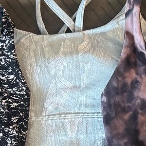 Three patterned sports bras in excellent condition! Worn once or twice. Size 4.