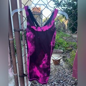 Lululemon workout top pink and black purple and black fitness top yoga top criss cross back flattering form fitting has built in sports bra