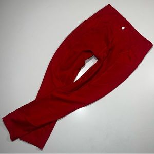 Lululemon cropped legging in a gorgeous red color! Train all the right places, these pants really do fit all the right places while showing off the best parts and beautifully complimenting the rest. Size 8