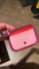 Stylish Lululemon card holder in pink and red. Compact and chic design.