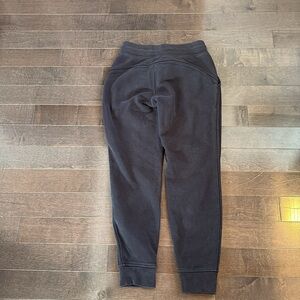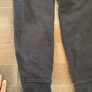 Lululemon warm up joggers, size 4. 28" inseam. Mid-rise. These are well-loved, tag missing. Only selling because they sadly do not fit. No stains, holes or rips. Piling inside, fading.