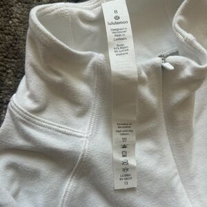 Lululemon white half zip long sleeve top size 8, pre-owned, good condition. small snag in. the armpit that is not noticable