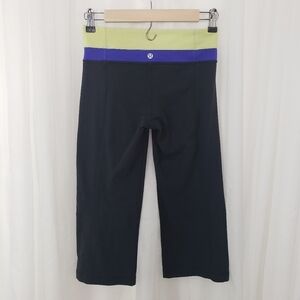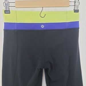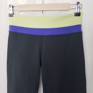 Lululemon wide leg black crop with blue and neon lime waistband size 4