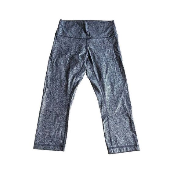 Lululemon womens Sz 8 black silver wunder under luminosity foil leggings hi rise crop