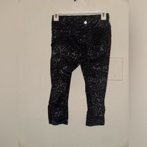 Lululemon women’s black grey printed capri cropped leggings 4 gym activewear