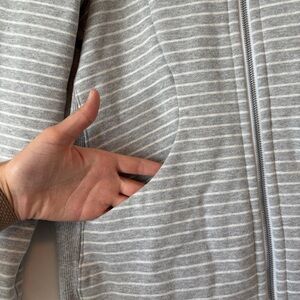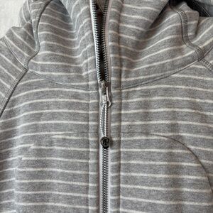Lululemon womens gray white stripe Scuba Hoodie Classic Cotton Fleece size 6
