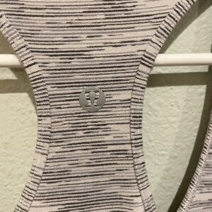 Lululemon women’s razorback hip length tank. Measures Size 4 Black and white patterned fabric.