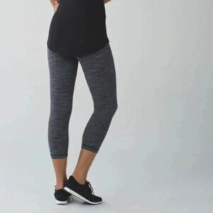 Lululemon wonder under crop , color diamond jacquard space dye black slate, size 4, material luon . In great condition .