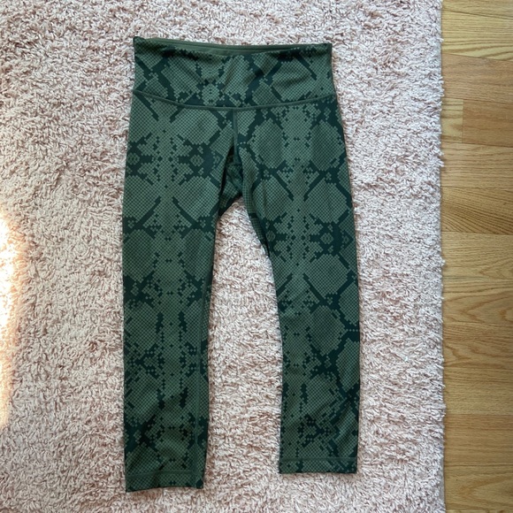 Lululemon wunder under crop snakeskin leggings! In great condition and barely worn!