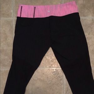 Adorable Capri length wunder unders size 8! Cute mesh detail from middle of leg down the back. Great condition only washed with other lulu items! If interested make me an offer! Cleaning out my closet!