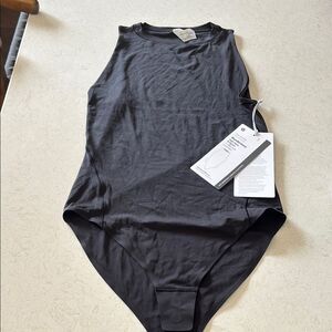 Chic black sleeveless bodysuit. Perfect for layering or wearing alone.