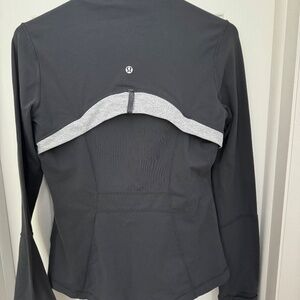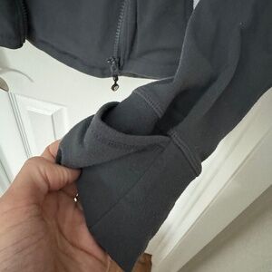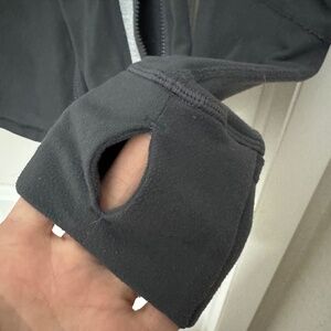 Grey women's Lululemon zip up jacket in size 8. Thumbholes and cuffins. Zippered pockets.