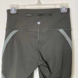 Lululemon zip the line crop leggings women’s 6 six dark olive grey sage EUC