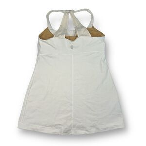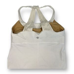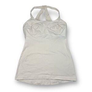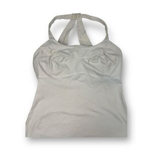 Spot for removable cups but cups are not present. White is not as bright as when new. No size tag present. Size was determined by measurements. Please refer to measurements to ensure fitment.