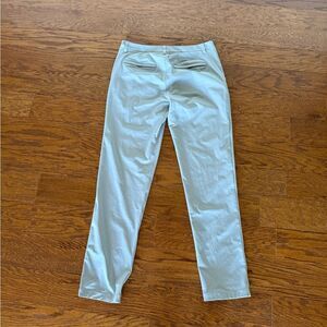 Experience the perfect blend of comfort and sophistication with these gray chinos from Lululemon Athletica. Crafted with a clean, flat front design, these pants offer a regular fit that complements any casual or semi-formal occasion. Made from lightweight fabric, they ensure ease of movement and a polished look.