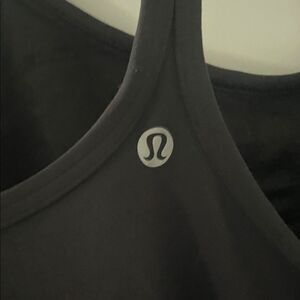EUC- the perfect black workout top with a shelf bra. Enjoy comfort and style in this essential wardrobe piece. It has soft wicking fabric and thin straps with a racer back and is hip length.