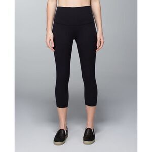 Lululemon Black Wunder Under Roll Down Crop Leggings.