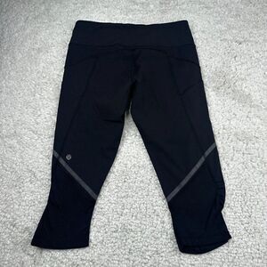 Lululemon Black Crop. Gently preowned in good overall condition. No stains or major holes. Sweat-wicking