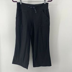 Lululemon Athletica Solid Black Wide Leg Sweat Pants Cropped Relaxed Fit Warm Ups Yoga Pant