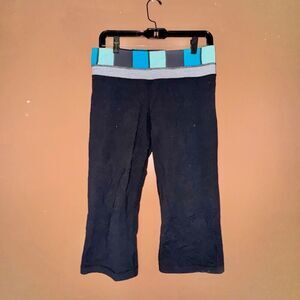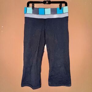 Lululemon Athletica blue and black cropped capri yoga leggings in size 8.