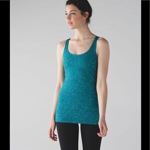 Lululemon Cool Racerback Teal Manifesto tank top size 6. This versatile tank has a slim racerback that stays put—and out of your way—when you're on the move. Light Luon - a lightweight version of Luon fabric, this sweat-wicking Material is four-way stretch and perfect for layering during sweaty workouts but still has a cottony-soft feel. Added LYCRA fibre adds a little stretch and is great for shape retention.