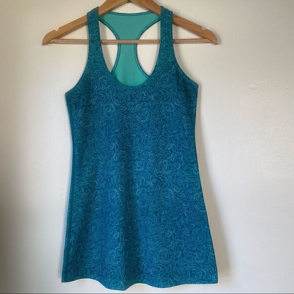 Lululemon Cool Racerback Teal Manifesto tank top size 6. This versatile tank has a slim racerback that stays put—and out of your way—when you're on the move. Light Luon - a lightweight version of Luon fabric, this sweat-wicking Material is four-way stretch and perfect for layering during sweaty workouts but still has a cottony-soft feel. Added LYCRA fibre adds a little stretch and is great for shape retention.