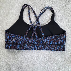 Lululemon Energy Bra. Gently preowned in excellent condition. No stains or holes. Padded inserts can be removed. Worn once. Unfortunately, too much compression for me. Beautiful leopard/camo print