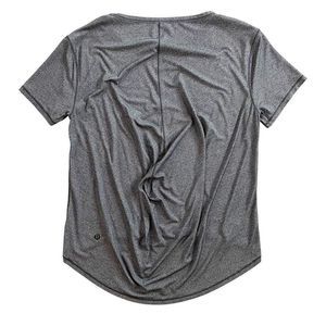 Lululemon Fall In Place Short Sleeve Top High-Low Hem Heathered Black Grey 4