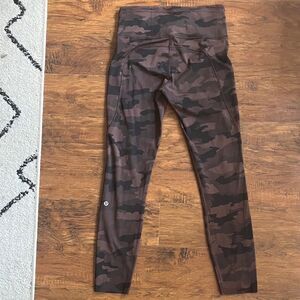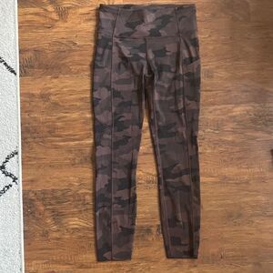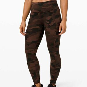 Lululemon Fast and Free Tight II 25", Heritage 365 Camo Brown Earth, size 6