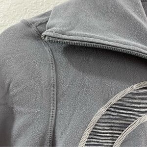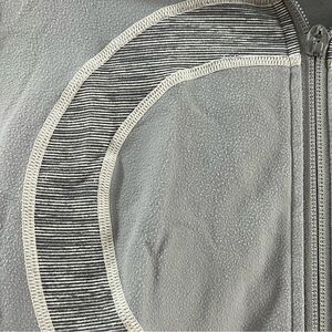 Flaws: the jacket has allover wash wear and pilling; the logo is cracking; and the zipper pull is missing