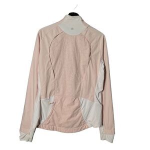 Windbreaker hybrid. Lighter pink is polyester. Darker pink is shell/nylon material.