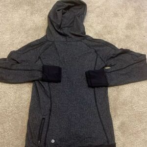 Cozy gray hooded sweatshirt by Lululemon. Perfect for casual wear.