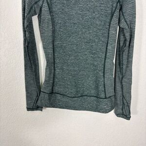 Lululemon Heathered Green Striped Side Scoop Neck Workout Long Sleeve Top Size 4