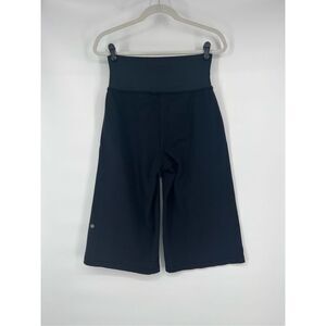Lululemon High Ribbed Waist Wide Leg Cropped Black Pants Size 8 Athleisure Comfy