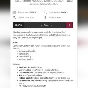 Lululemon style W4BI4 Hooded Define Jacket Luminescence Splatter White Black. Excellent condition no rips or stains. No pilling. Size 10 please see measurements pictures to be sure of fit. Retail: $128