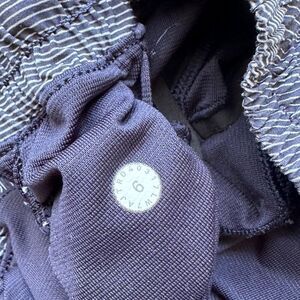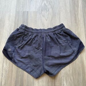 Lululemon Hotty Hot Short II (2.5") Etch Hail Midnight Navy / Midnight Navy. Size 6. Stylish and comfortable women's black striped shorts, perfect for casual outings or workouts.