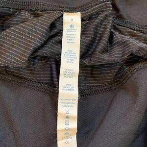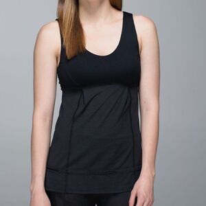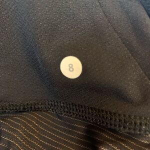 Lululemon Hustle & Bustle Black Tank with itty bitty light gold stripes, Size 8